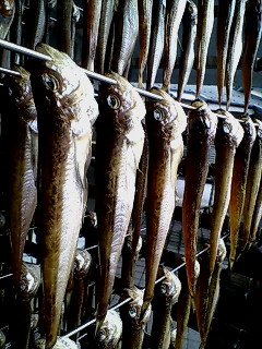小型の魚の一夜干しを素揚げにして販売してるんである。