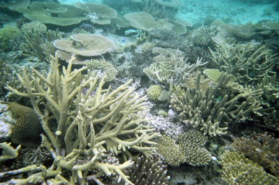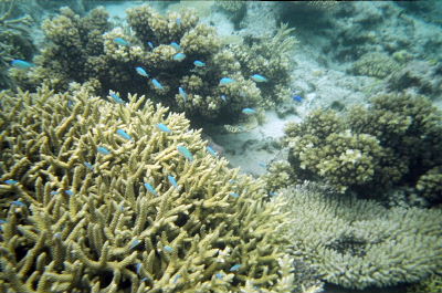 潮が満ちていると、広大なサンゴの群生が一度に目に入るので、